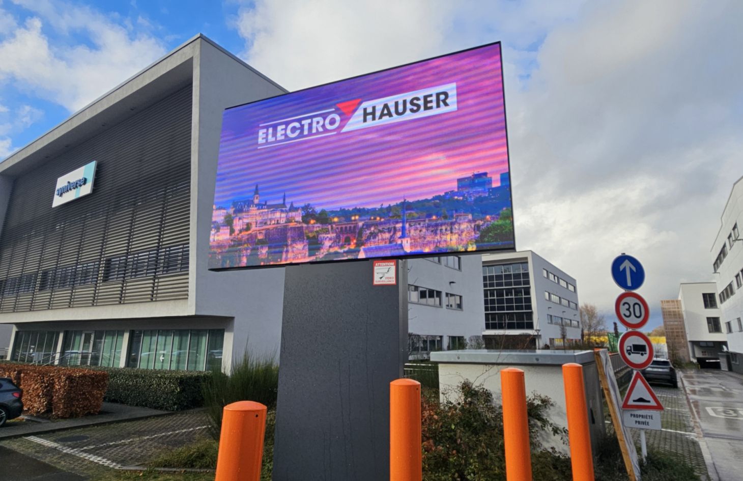 Que ce soit au sein de votre magasin, en vitrine ou à l’extérieur, Electro Hauser vous propose du matériel de pointe, écrans, fixations, raccordements et players en charge du contenu à diffuser. Nous assurons naturellement la configuration du système de gestion des contenus vidéo que vous souhaitez afficher sur votre écran publicitaire.